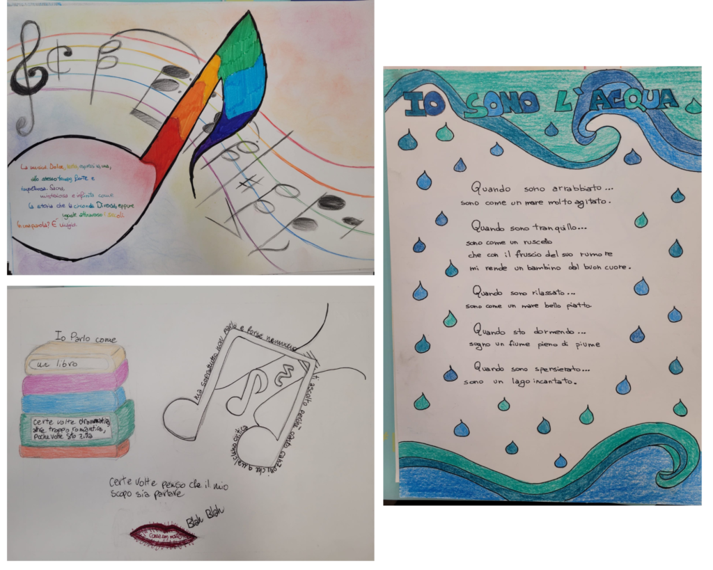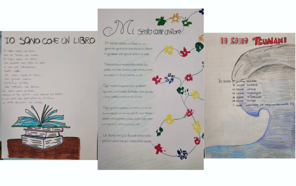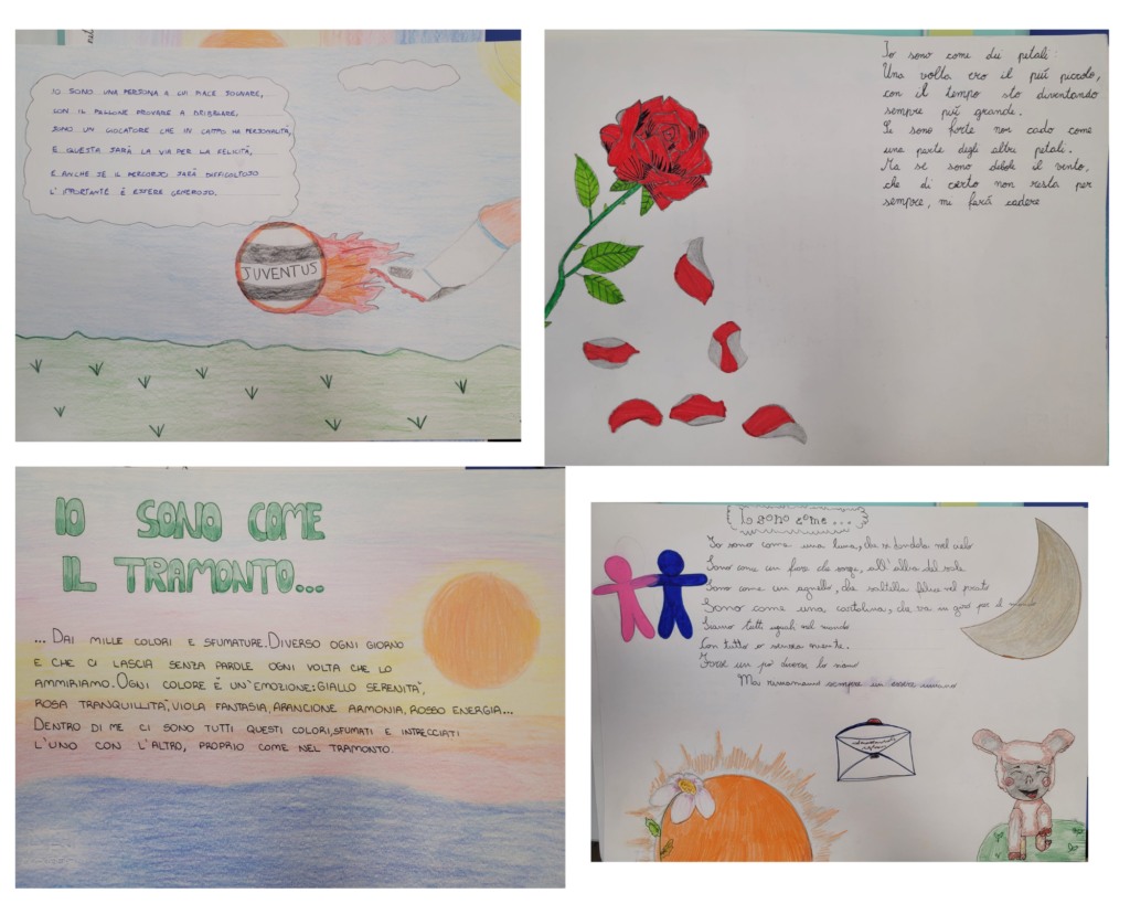 Dopo aver ascoltato l’insegnante leggere l’albo, nel corso di due lezioni, accompagnati anche dalla prof. Cecilia De Faveri, abbiamo dato libero sfogo alle nostre emozioni, realizzando delle tavole con testi poetici che ci rappresentano e un disegno che descrive il messaggio delle poesie.