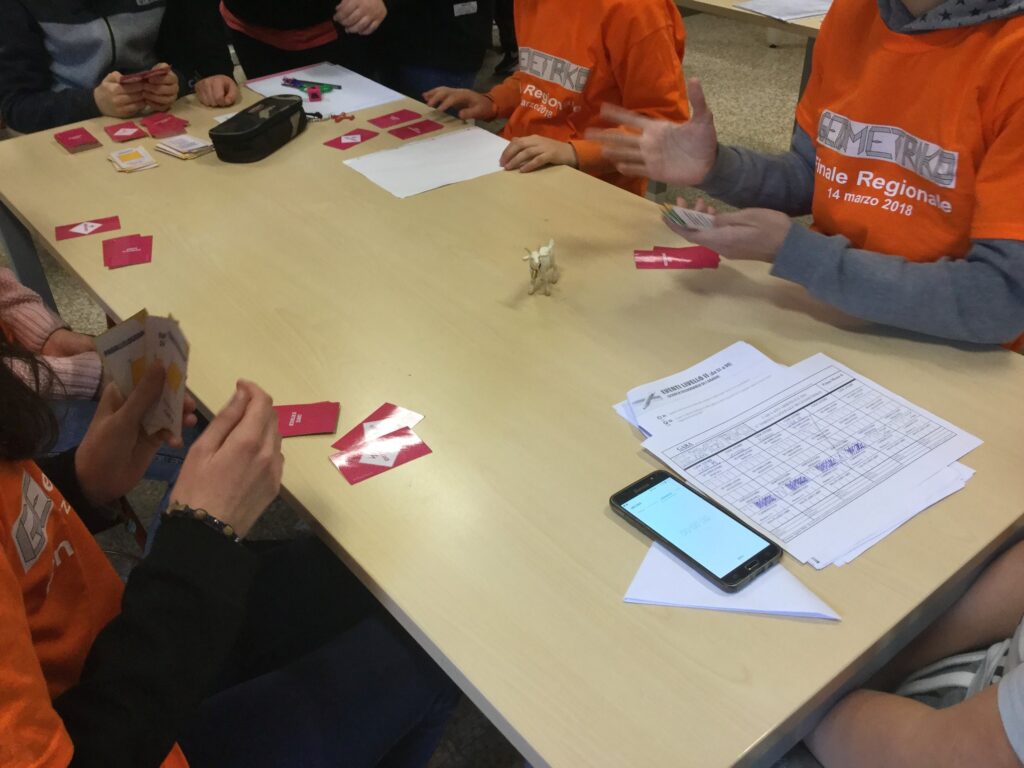 Si scontrano dai 5 ai 6 ragazzi per tavolo e vince chi riesce a togliere più carte quadrilatero agli avversari attraverso le carte d’attacco.