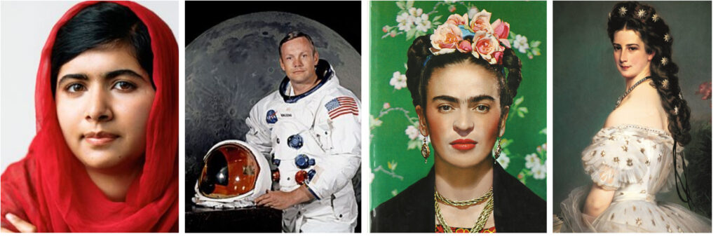 Dunque, lasciatevi sorprendere dalle storie qui di seguito e immergetevi nelle vite straordinarie di Frida Kahlo, Neil Armstrong, Malala Yousafzai e della principessa Sissi.